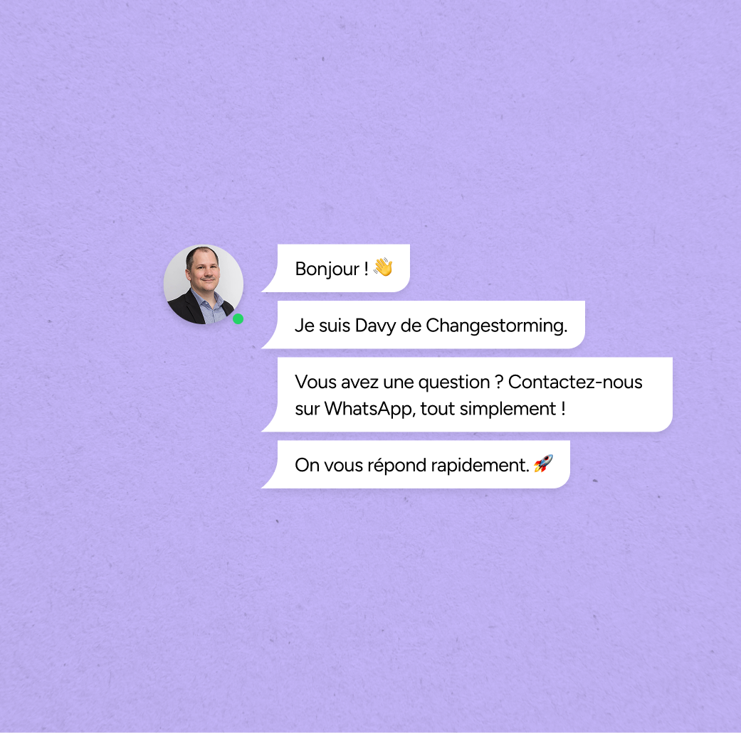 * Les champs identifiés par un astérisque sont obligatoires ; à défaut, nous ne pourrons traiter votre demande. Vos données sont traitées par Changestorming, responsable de traitement, afin d’assurer la gestion des demandes reçues. Sous réserve d’obtenir votre consentement préalable et exprès, vos données pourront également être utilisées à des fins de prospection commerciale. À tout moment, vous pourrez retirer votre consentement. En savoir plus sur notre politique de confidentialité.